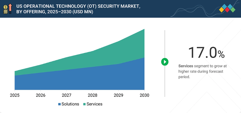人材育成施策と並行し、公益事業体、エネルギー事業者、製造業者、交通機関、公共インフラ機関はOTセキュリティサービスへの支出を拡大している。これには内部能力の不足を補うため、管理型監視と自動化された異常検知の活用拡大が含まれる。OTシステムアクセス権限を持つ要員への必須レジリエンス研修や、産業研究・イノベーションへの資金増額は、インシデント対応準備態勢を強化している。組織がスキル関連リスクの低減に取り組む中、OT自動化、AI対応テレメトリ、24時間365日監視の導入は増加を続け、米国OTセキュリティ市場の着実な成長を支えている。