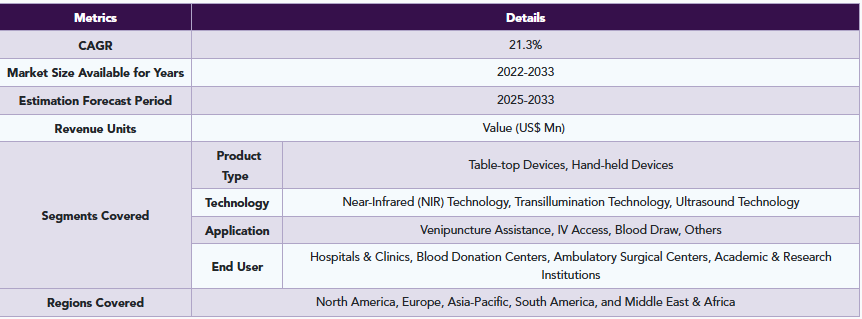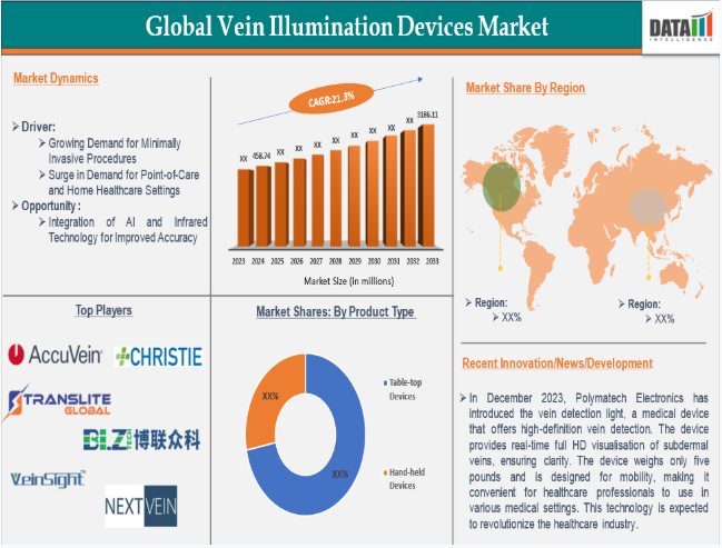 静脈照明デバイス市場の主要なグローバル企業には、AccuVein Inc、Christie Medical Holdings, Inc、TransLite LLC、BLZ Technology Inc、VeinSight、Near Infrared Imaging, Inc、Cambridge Medical(Venoscope)、VueTek Scientific LLC、NextVein LLCなどが挙げられます。