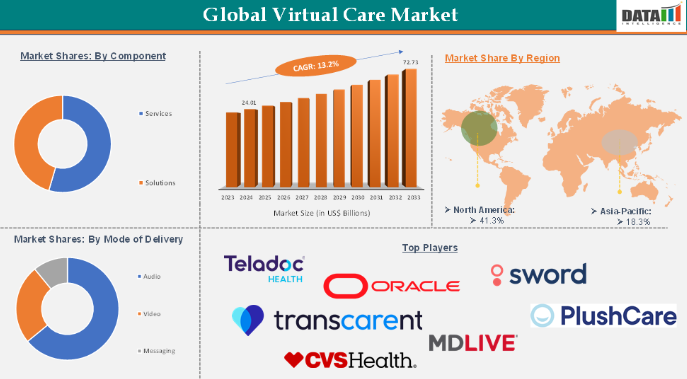 バーチャルケア市場の主な世界企業には、Teladoc Health Inc.、Oracle Corporation、Sword Health Inc.、PlushCare、Transcarent、MDLIVE、Medocity Inc.、CVS Healthなどがあります。