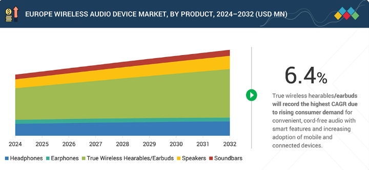 2032年までにドイツが欧州ワイヤレスオーディオ機器市場で最大の国となる見込み